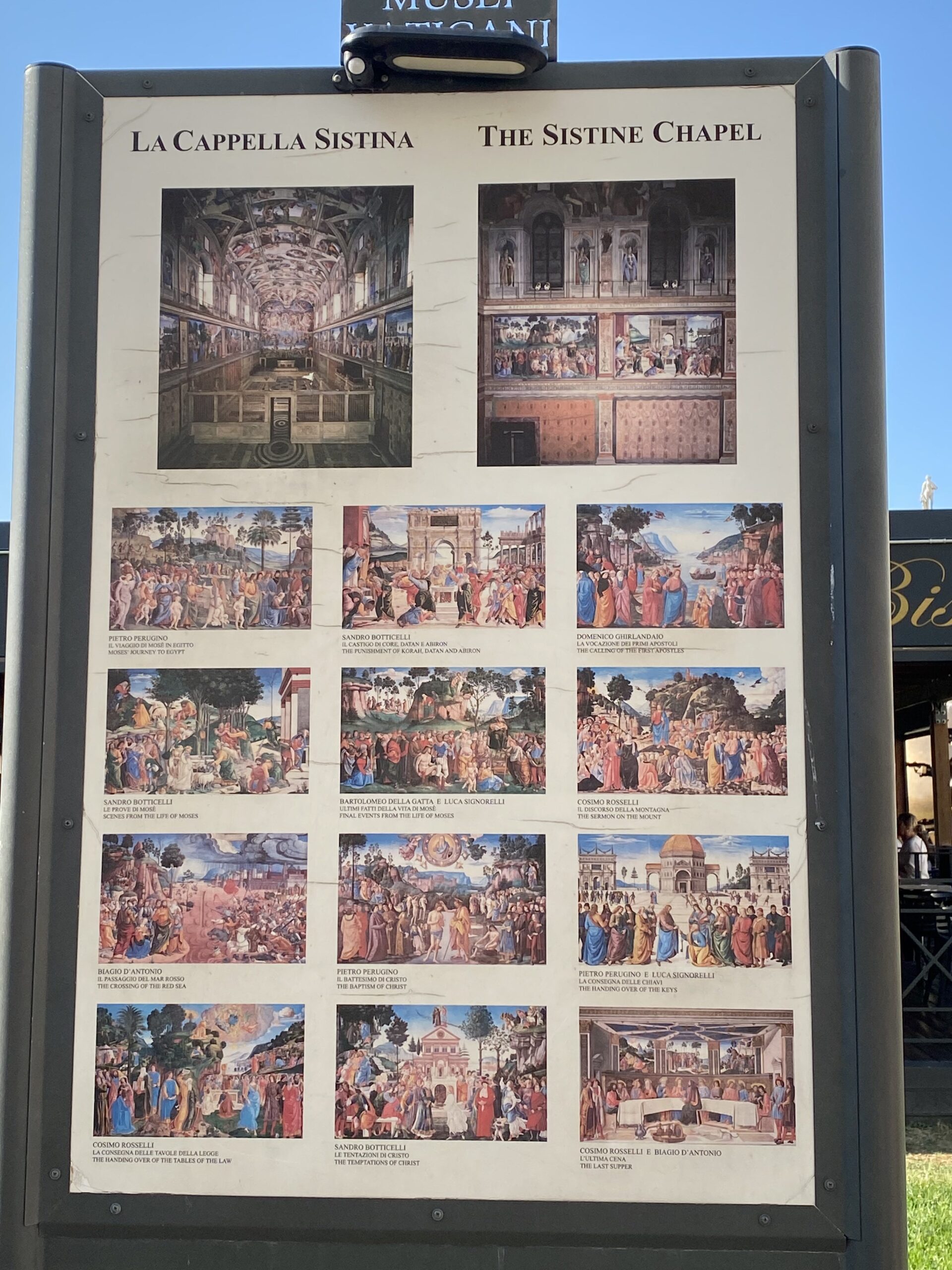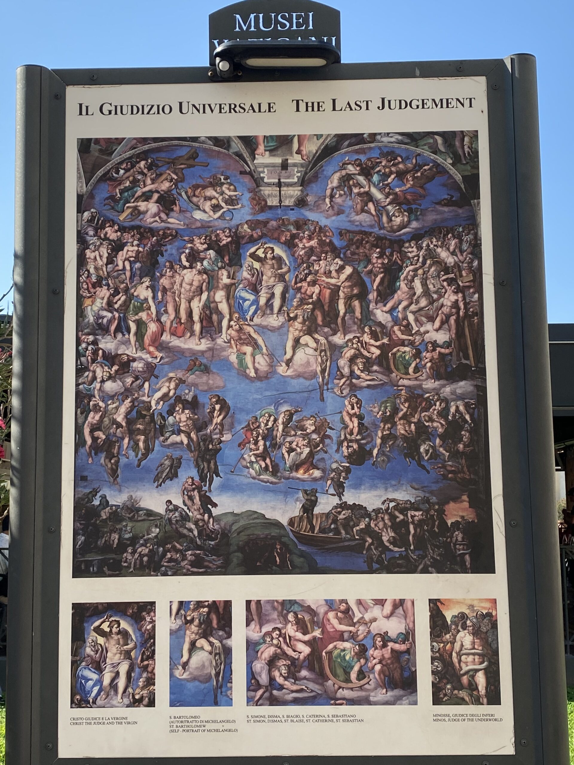 バチカン市美術館、システィーナ礼拝堂、サン・ピエトロ大聖堂を日本語ガイドさんが午前半日で案内してくれるローマでの現地オプショナルツアーを予約して行ったが、肝心のシスティーナ礼拝堂は写真撮影、動画撮影禁止のためパネルで紹介する。